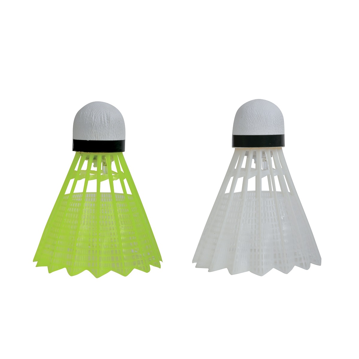 Badmintonové míčky TALBOT TORRO Magic Night LED jsou speciálně navržené badmintonové míčky s integrovanou LED diodou, která při hře rozzáří letící míček. Míčky mají plastové košíčky a jsou ideální pro rekreační použití. V každém míčku je integrovaná baterie CH927, která vystačí na cca 10 hodin svitu. Osvětlení je iniciováno vypínačem na spodní straně míčku. V balení jsou 3 náhodně vybrané míčky v barevných kombinacích bílý míček/zelená LED, žlutý míček/červená LED.