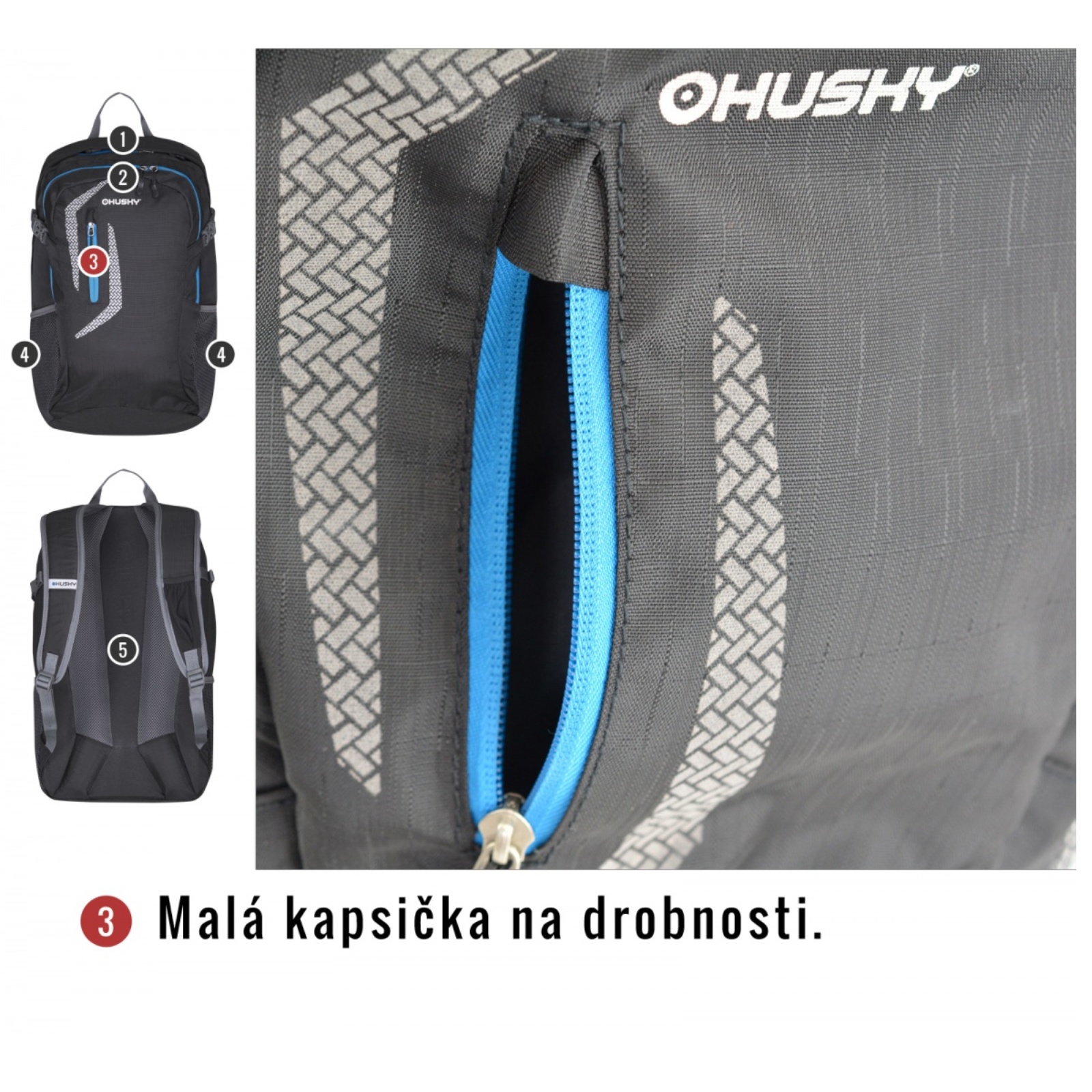 Batoh Malin má anatomicky tvarovaný zádový systém, polstrování na anatomicky tvarovaných ramenních popruzích, 2 hlavní komory a přední kapsu.