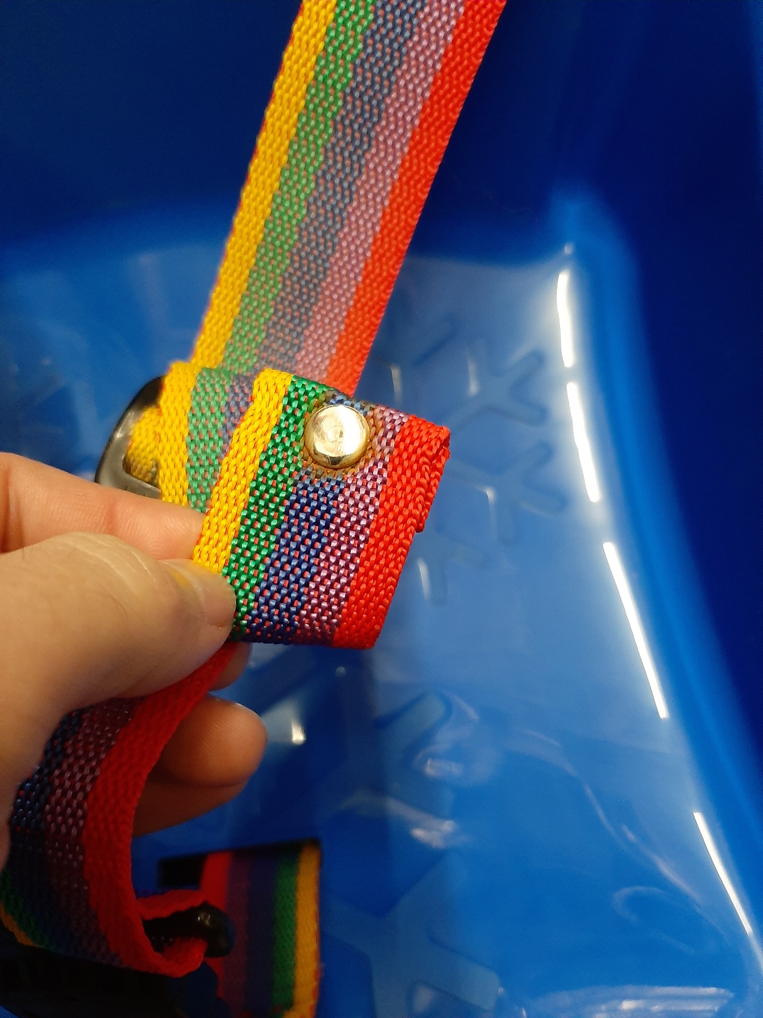 Boby Baby Mini - modré - 2. jakost jsou naprosto funkční, vlivem skladování v nevhodném prostředí došlo k drobnému zabarvení bezpečnostních pásů v oblastech prostupu ocelových cvočků. Jedná se o kosmetickou vadu, která nemá na praktické používání bobů žádný vliv.