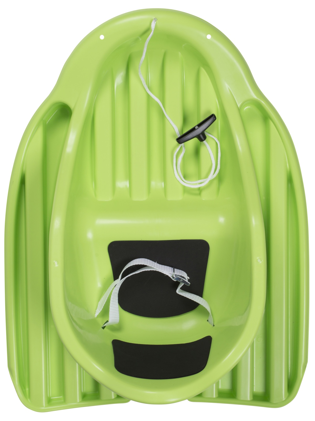 Sedátko a opěradlo je doplněno o polstrování, které kromě pohodlí přináší i větší odolnost proti chladu. Součástí bobů je bezpečnostní pás, takže se nemusíte bát o bezpečí vašeho dítěte. V přední části je připevněno pevné tažné lano s plastovou rukojetí.