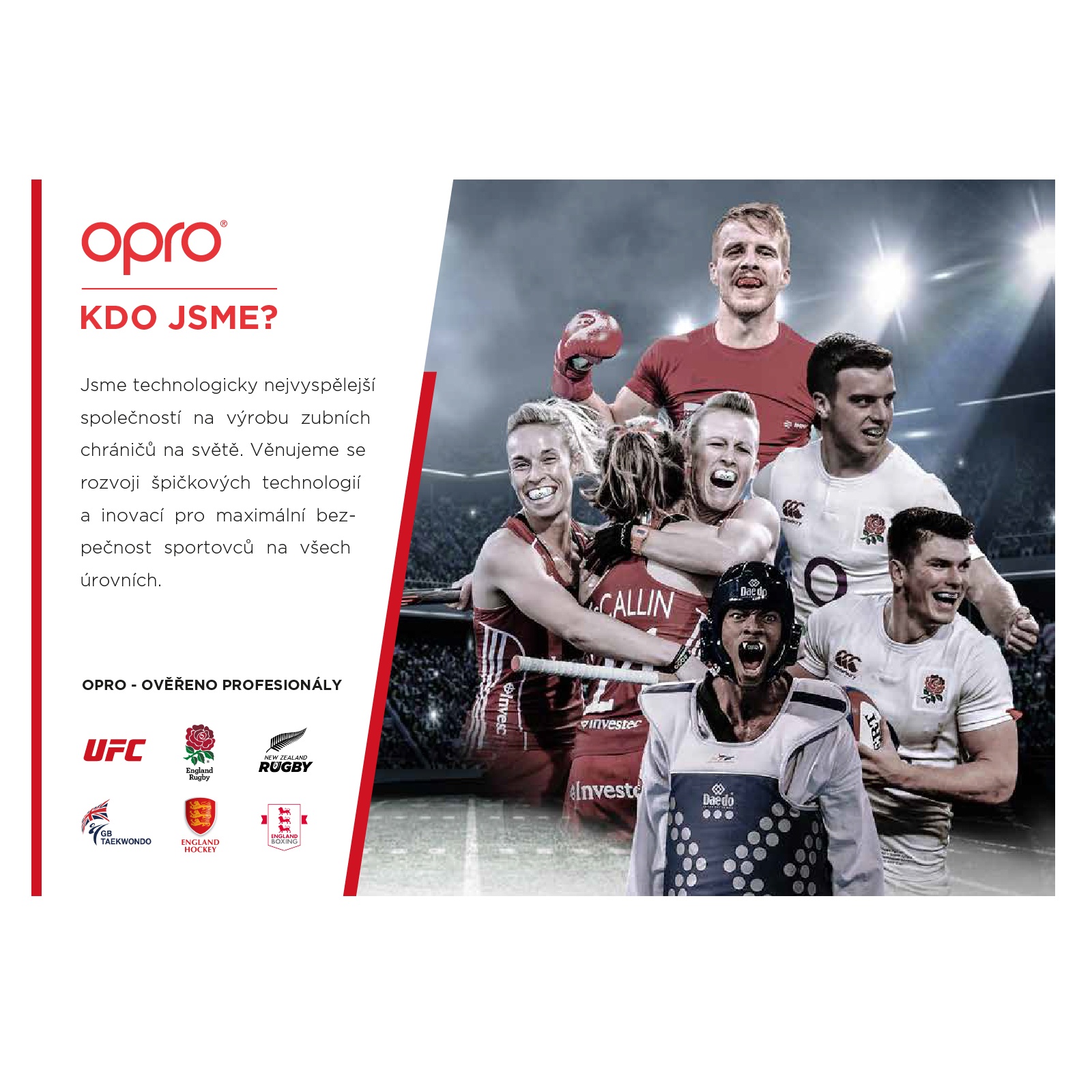 OPRO je technicky nejvyspělejší společností na výrobu zubních chráničů na světě a je hlavním průkopníkem ve vývoji v oblasti ústní ochrany. Z moderního výrobního závodu ve Velké Británii se značka věnuje rozvoji špičkových technologií, inovací a bezpečnosti pro sportovce na všech úrovních. Množství profesionálních světových sportovců, kteří nosí chrániče OPRO, ukazuje, jak je podpora a inspirace na dlouhé cestě ke sportovnímu úspěchu rozhodující.