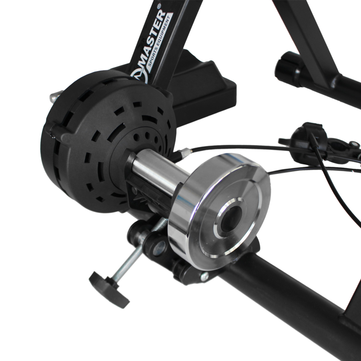 Cyklistický trenažér MASTER X-04 s magnetickou brzdou a stabilním rámem. Brzda má osmistupňovou regulaci brzdného odporu. Regulace odporu se provádí páčkou, kterou lze umístit na řidítka. Kolo se upevňuje pomocí ocelových upínacích šroubů s plastovými maticemi. Cyklotrenažér MASTER X-04 je ideálním pomocníkem pro domácí trénink.