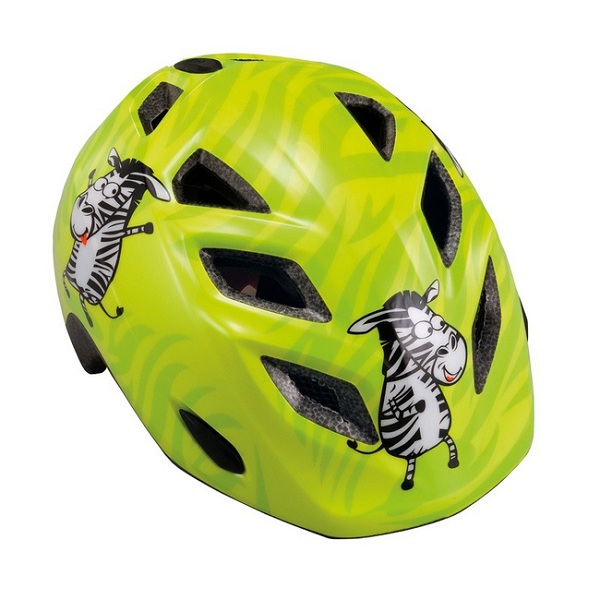 Cyklo přilba MET Elfo 46-53 zelená zebra má Integral-In-Molding konstrukci. Tato pokročilá konstrukce využívající spojení mezi externí skořápkou a polystyrénem zaručuje odolnost a lehkost. Jádro helmy tvoří se skeletem jeden celek. Vnitřní geometrie helmy podle systému Bimbi-Secure pohlcuje energii při pádu mimo oblast fontanely. Jednoduchý týlní utahovací sytém Safe-T E-Twist, který přináší možnost dotažení helmy jednou rukou, je dále doplněný o červenou LED blikačku. Samozřejmostí je integrovaná síťka proti hmyzu.