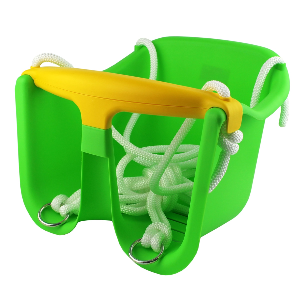 Dětská plastová houpačka CHEVA Baby je díky bezpečnostní pojistce vhodná pro nejmenší děti od 12 měsíců.