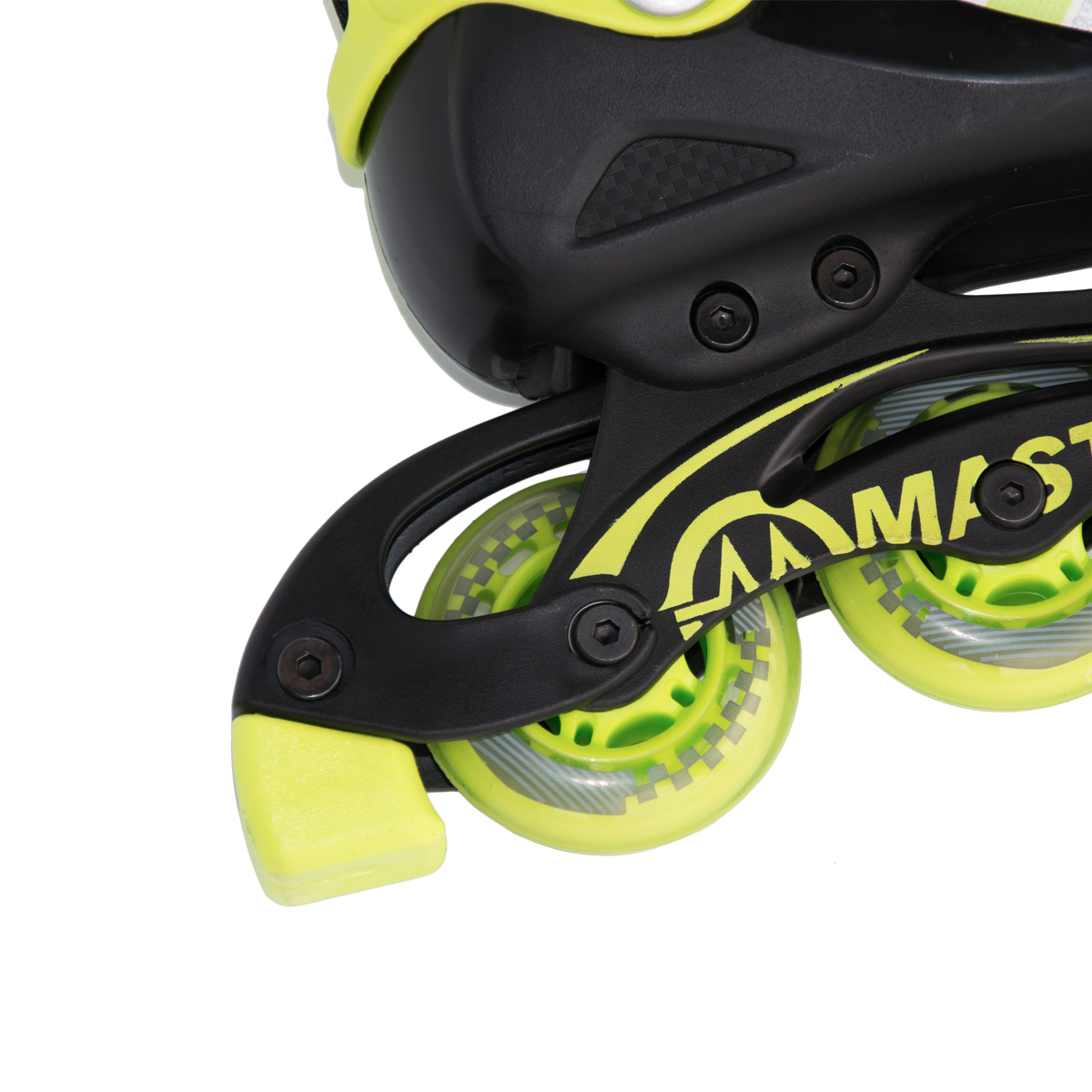 Juniorské brusle MASTER Myrtle mají nastavitelnou velikost, která pokryje hned 4 čísla, tím pádem nemusíte svým dětem kupovat rok co rok nové brusle.