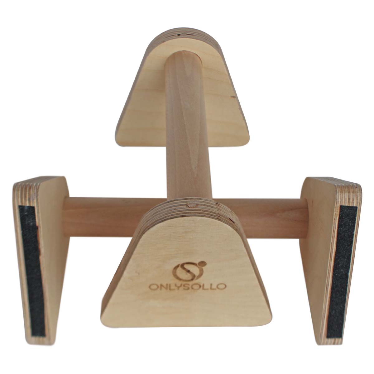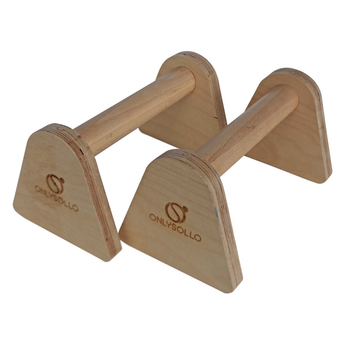 Dřevěné stálky - jednoručky ONLYSOLLO můžeme použít na kliky, špicary, váhy a další cviky. Díky své nízké hmotnosti (jen 0,5 kg) a kvalitnímu provedení je můžete používat prakticky kdekoliv, doma i venku.