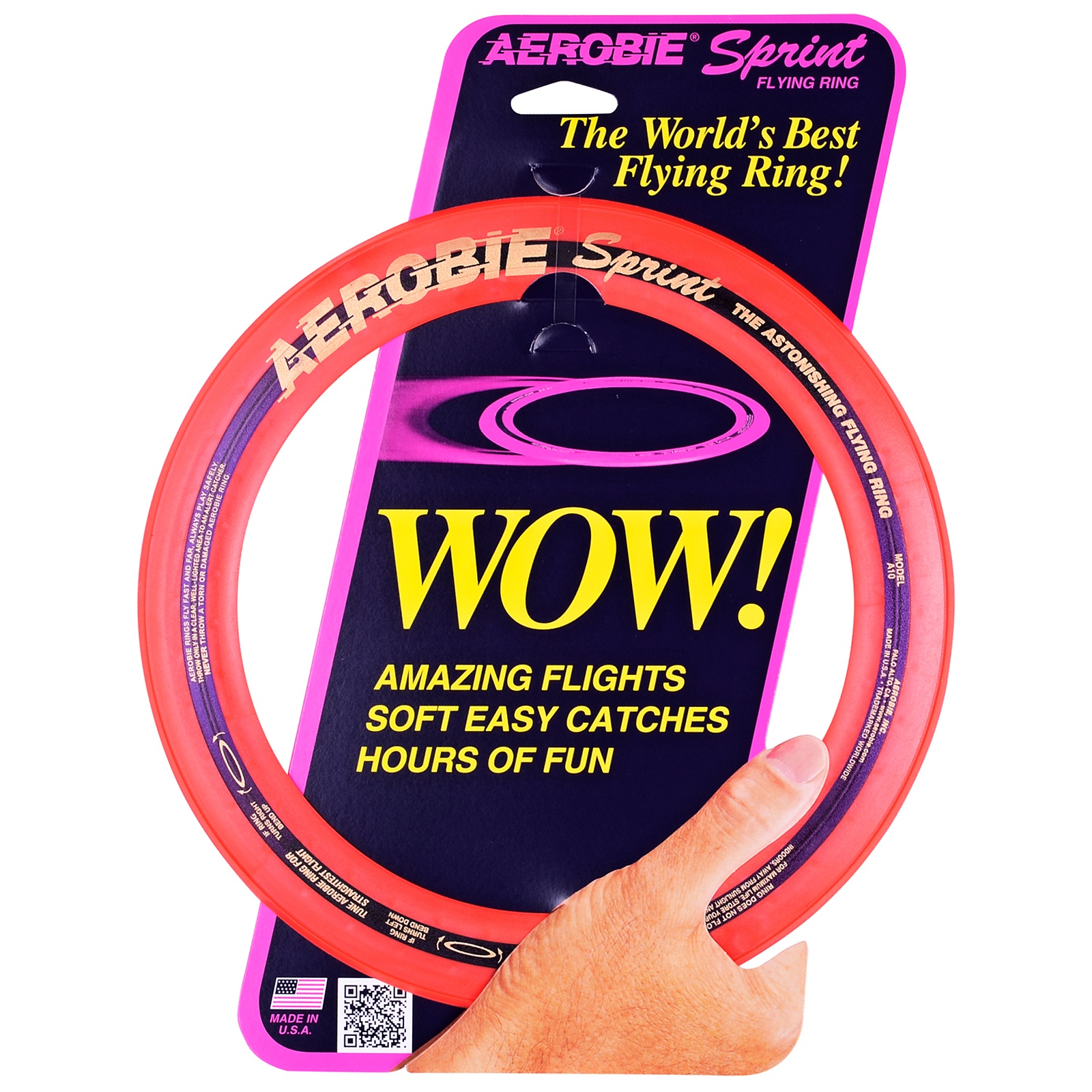 Sprint je menší verzí létajícího kruhu Aerobie Pro, se kterým byl vytvořen světový rekord zapsaný v Guinnessově knize rekordů. Létající kruh Aerobie Sprint má obdobně skvělé letové vlastnosti - létá rovně a 2x dále než běžné létající talíře. Je určený pro menší prostory (parky, hřiště, pláže, kempy apod.) než verze Pro a doporučený pro děti od 7 let.