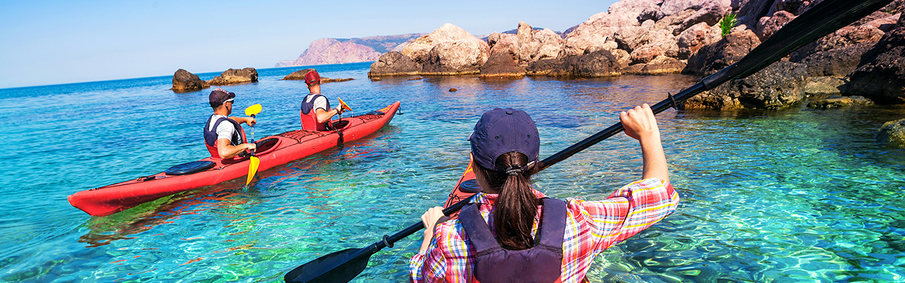 Jak vybrat kajakové pádlo? Správnou délku pádla určíte podle způsobu pádlování, výšky postavy a typu kajaku. Pádlo uchopte tak, aby s lokty svíralo pravý úhel. Dítě by mělo mít delší pádlo, než odpovídá měření ve stoje.