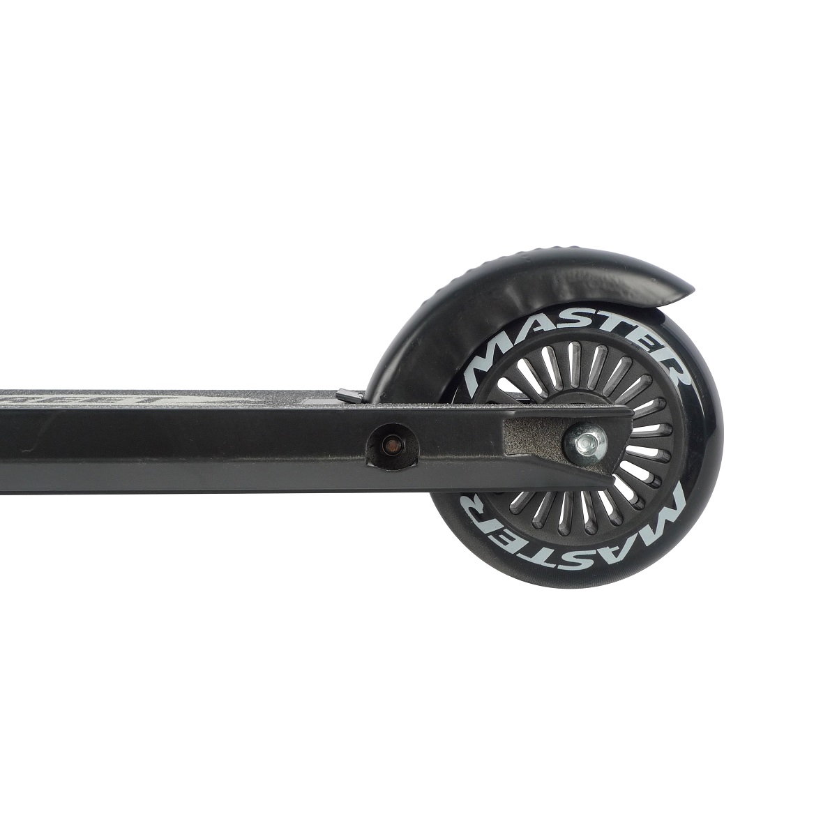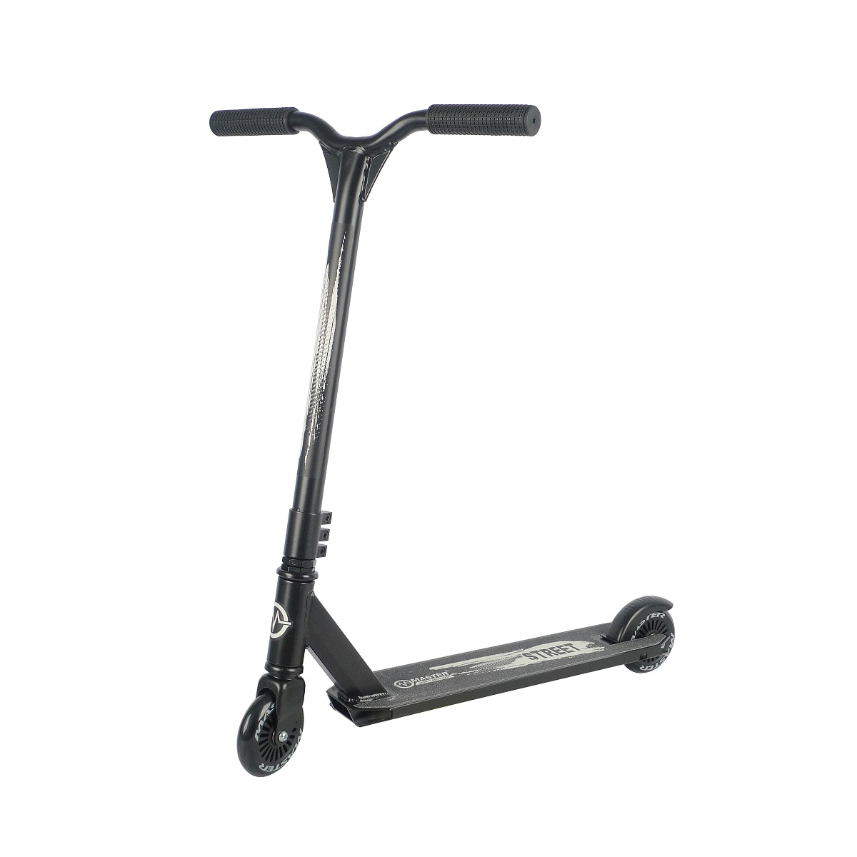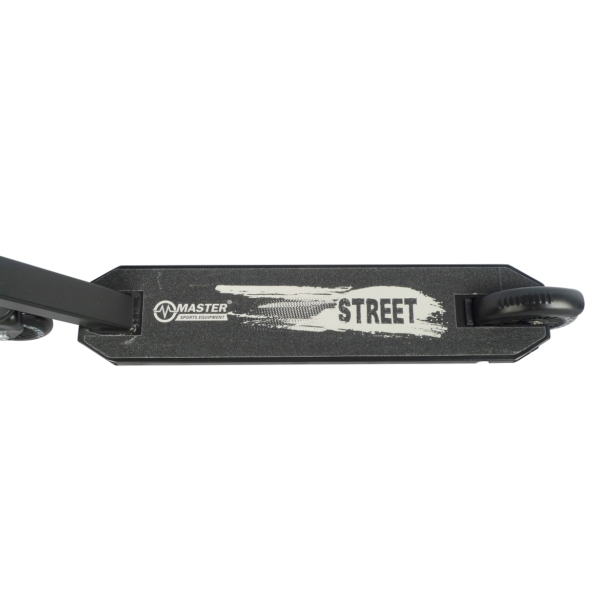 Master STREET je ideální koloběžkou pro všechny děti, které si chtějí užít spoustu zábavy. Díky své konstrukci je vhodná pro jízdu a provádění triků na ulici či ve skateparku. Rám je vyroben z hliníku, je proto nejen pevný, ale také lehký. Odolná konstrukce přitom ale unese až 100 kg. Koloběžka má speciální 360° řídítka z chromované oceli ve tvaru Y. Má také drážkované TRP rukojeti, které zajistí pevnější úchop než běžné gumové rukojeti. Můžete se spolehnout, že vám ani při drsné jízdě nebude ruka sklouzávat.