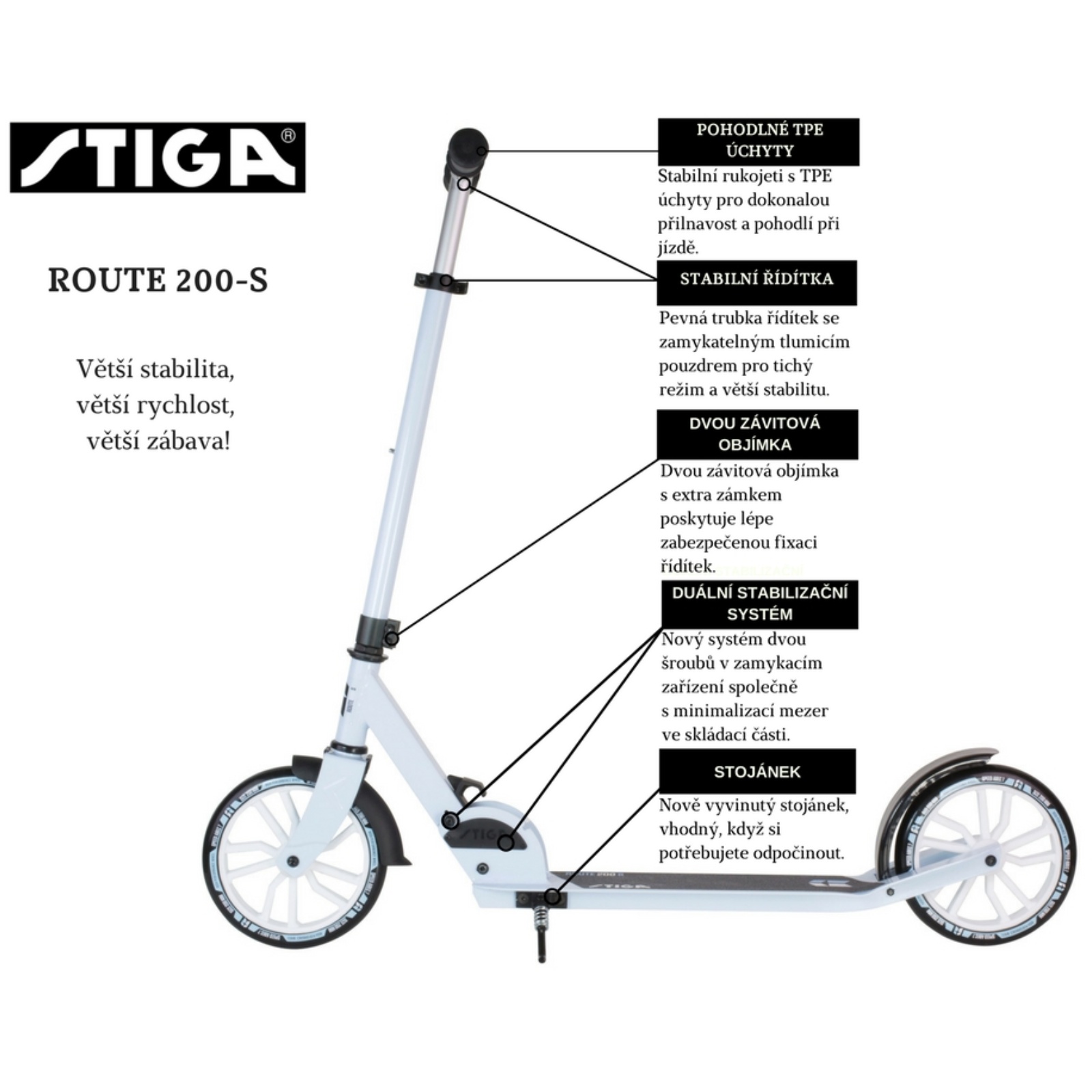 Skládací koloběžka Route 200-S je vyrobená švédskou firmou STIGA, která je již od roku 1957 známá vysokou kvalitou svých výrobků a zakládá si na precizním zpracování i toho nejmenšího detailu.