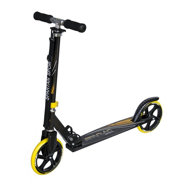 Dalším typem skládacích koloběžek je koloběžka SPARTAN JUMBO - 205 MM, jejíž rám je vyroben z odlehčeného materiálu, a to z hliníku. Tato koloběžka patří mezi kvalitnější typy skládacích koloběžek, která obsahuje odpružené přední kolečko, ložiska ABEC 5 steel carbon, má nastavitelnou výšku řídítek a také na nášlapnou zadní brzdu, což je již standardem. Maximální zatížení je 100 kg, čímž se stává vhodnou pro již odrostlejší děti a dokonce i pro některé dospělé. Váha této koloběžky je 3,7 kg.