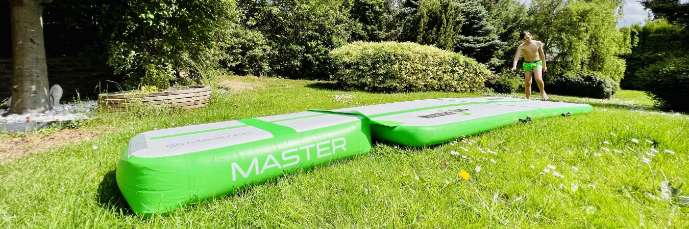 Airtrack Master je vážně skvělá věc, kterou děti využijí jak doma – klidně i v pokojíčku, tak samozřejmě také venku. Airtrack je perfektní na trénování gymnastiky, užijete ho i na parkour, bojové sporty…