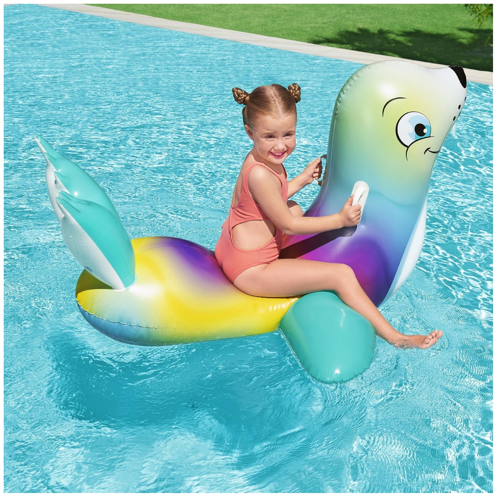 Nafukovací tuleň, jak oblíbené zvíře u dětí. Roztomilé a přátelské. Toto nafukovací lehátko si vaše děti zamilují. Lehátko do vody je děláno ve stylu ride on. Děti se tak na nafukovacího tuleně mohou bezpečně posadit a držet se 2 robustních madel. Vinylové lehátko pro děti měří 157 x 114 cm. Lehátko na vodu má maximální nosnost 45 kg.