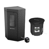 Nádoba pro výrobu páry pojme 3 litry a zajistí vám tak ničím nerušenou relaxaci až na 60 minut. Dobu saunování si můžete na přístroji předem nastavit, stejně tak jako stupeň intenzity páry v sedmi stupních. Sauna je vysoká 178 cm, díky oboustrannému zipu se do ní velmi snadno vstupuje. Součástí balení je pohodlná židlička. Prostor pro saunování je osvětlen řadou LED diod. Pro případné větrání můžete využít průhledné okénko se zipem.