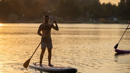 Paddleboarding je nový vodní sport, při kterém stojíme na boardu a vpřed se pohybujeme pomocí dlouhého pádla. Oblíbený vodní sport umožňuje zapojit rovnoměrně celé tělo, zlepšíit smysl pro rovnováhu a zvýšit celkovou fyzickou kondici. Při pádlování se aktivně zapojují lýtkové svaly na nohou, zádové a šikmé břišní svaly a všechny svaly na rukou.