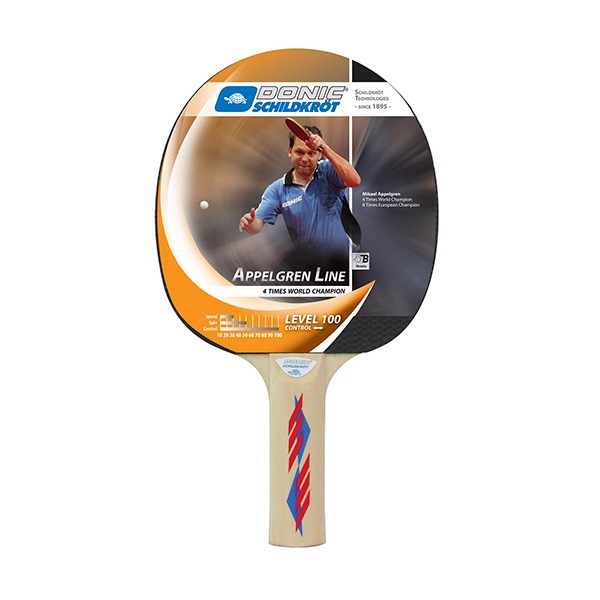 Pálka na stolní tenis DONIC Appelgren 100 z kolekce pálek pojmenované podle jednoho z nejznámějších světových šampionů Mikaele Appelgrena.