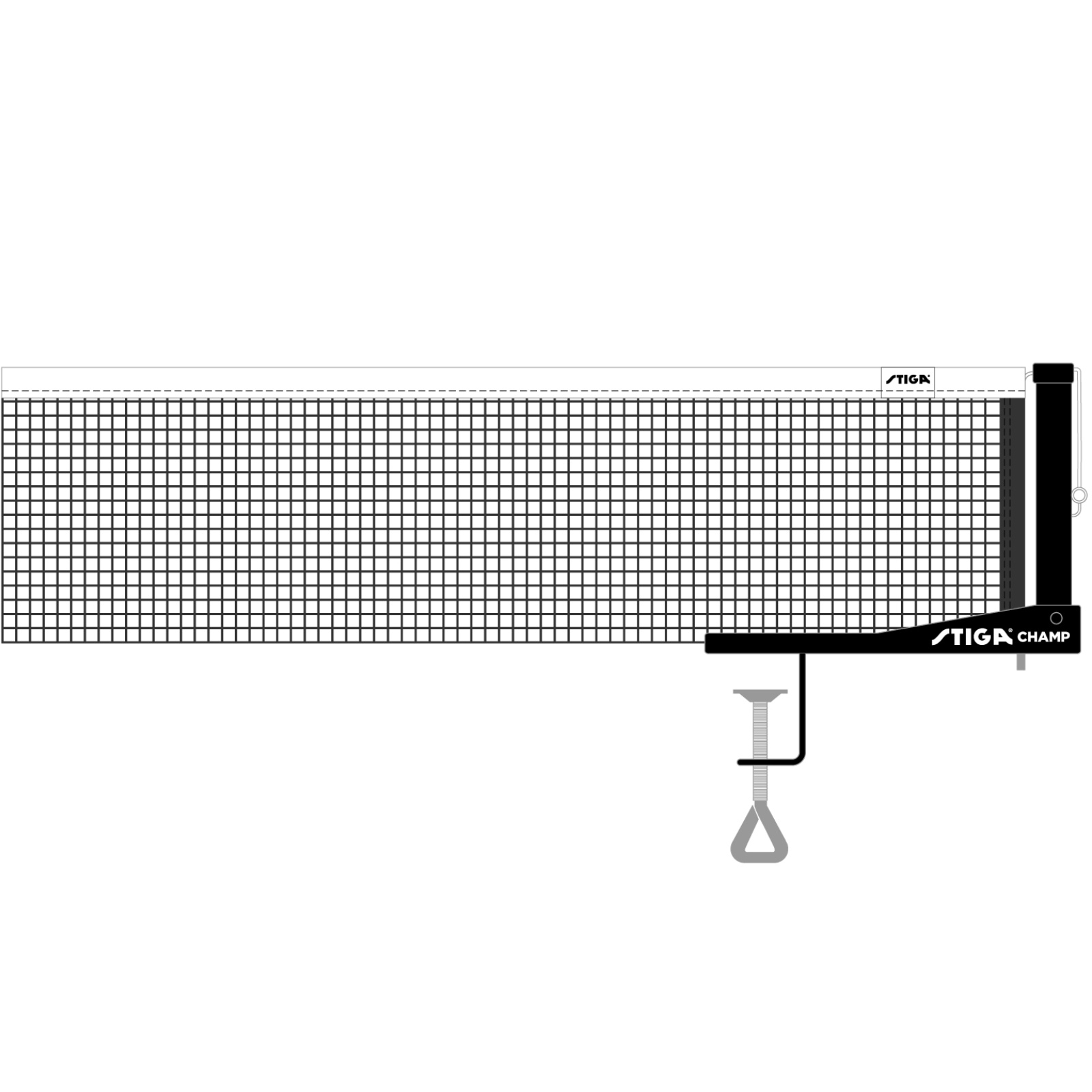 Síť na stolní tenis Stiga Champ je kvalitní síť na stolní tenis, kterou během pár vteřin připravíte ke hře. Síť je vyrobena z modré nylonové síťoviny, takže je dobře viditelná. Síťku na stůl snadno uchytíte klasickým šroubováním, bude tak pevně držet a nebude během hry padat. Uchycení umožnuje napnutí sítě.