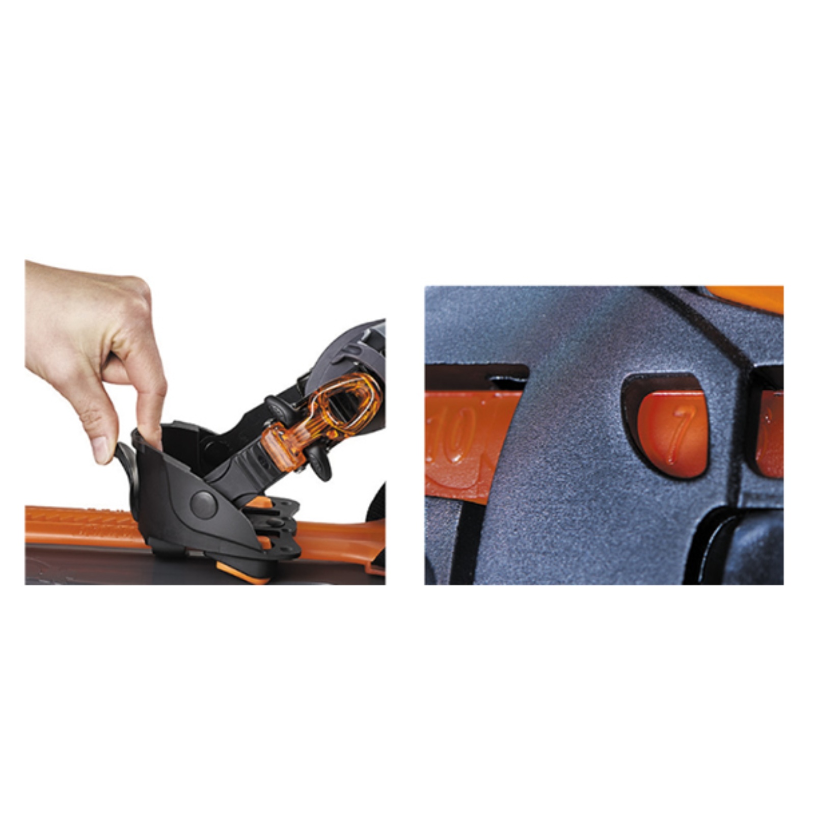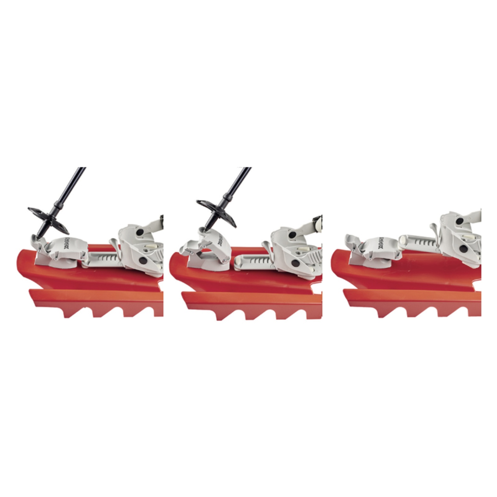 Sněžnice díky posuvnému systému uchycení paty je velmi snadno nastavitelná pro jakoukoliv velikost boty. Maximální velikost boty je 12. Inook Inookem dělá jedinečný systém zamykání paty. Zamknutí či odemknutí lze jednoduše udělat holí vestoje, jak známe ze skialpového vázání. Už žádné problémy při překračování spadlých stromů a podobně. Lišta, po které se posouvá uchycení paty, je z vyztuženého materiálu. Proto lze zamykací systém použít i jako celkem užitečné podložení paty, které též známe ze skialpů. Za zmínku stojí i chytře řešené upínání boty. Dotažení boty je pomocí ráčny jak známe ze snowboardového vázání. Na ráčně je speciální systém, díky kterému lze ráčnu snadno povolit i v rukavicích. Navíc lze upínací pásek přizpůsobit objemu boty.