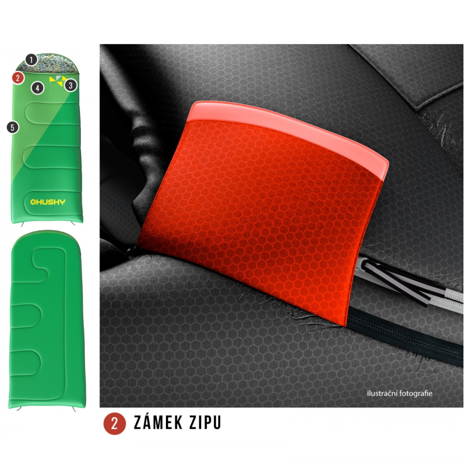 - podélné zapínání spacáku