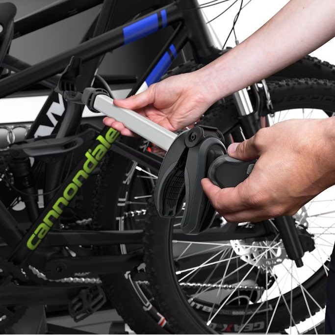 - Snadné upevnění kol díky odnímatelným držákům rámu vybaveným růžicí s omezovačem momentu utažení Thule AcuTight, který cvakne, jakmile je kolo optimálně upevněno